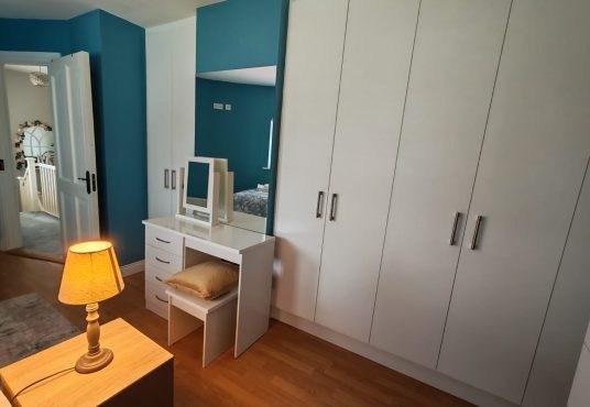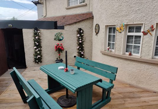 Key Features: Unique architectural design – The design of this house makes each room unique and adds charm and distinction Three spacious bedrooms, including one with en-suite on the ground floor Modern open-plan kitchen/living area with bespoke fitted kitchen, breakfast bar, dining area, and soft furnishings Ample storage throughout, with potential for conversion to additional living space High-quality finishes throughout Oil-fired central heating, upgraded plumbing and electrics, The house is fully insulated throughout Large adjoining garage (~20ft x 18ft) – perfect for conversion to additional living space, home office, or studio Private garden, new decked area to the side, off-street parking, and rear access Excellent broadband availability – ideal for remote working Option to retain all furnishings and appliances – move in or rent out immediately